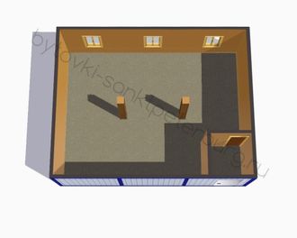 Черновой пол - доска 25х100 мм. Половые и потолочные лаги - доска 40х100 мм; Обрешетка - доска 25х100 мм; Чистовой пол - ДСП 16 мм |